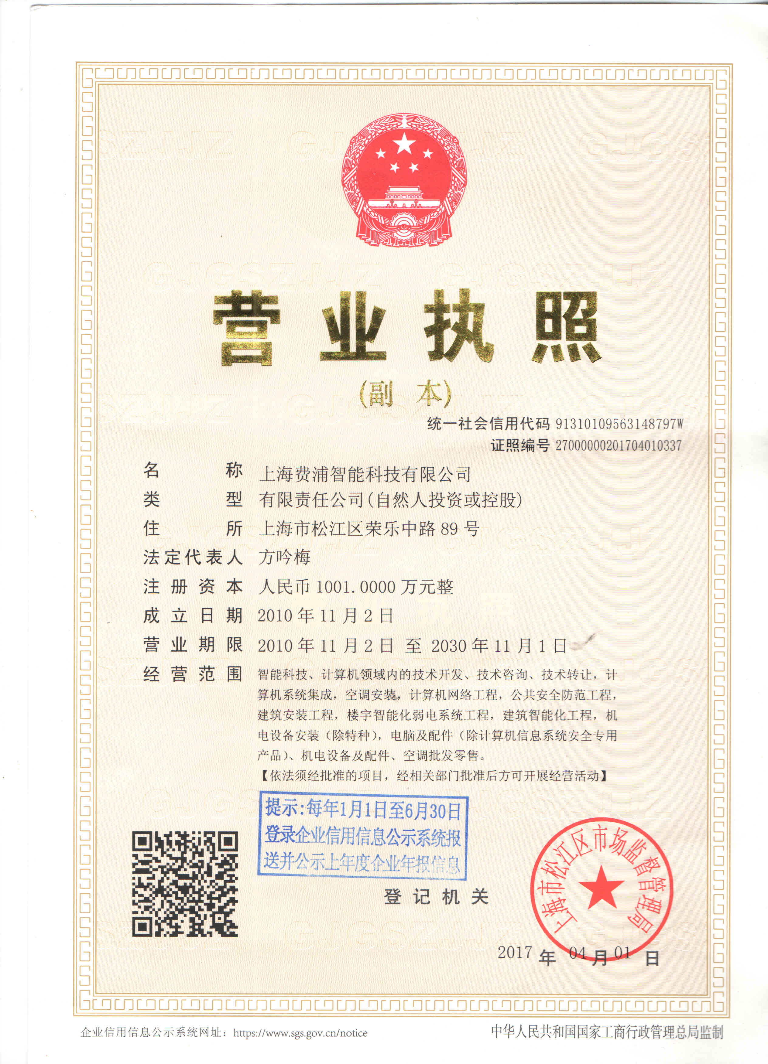 企業(yè)營業(yè)執(zhí)照